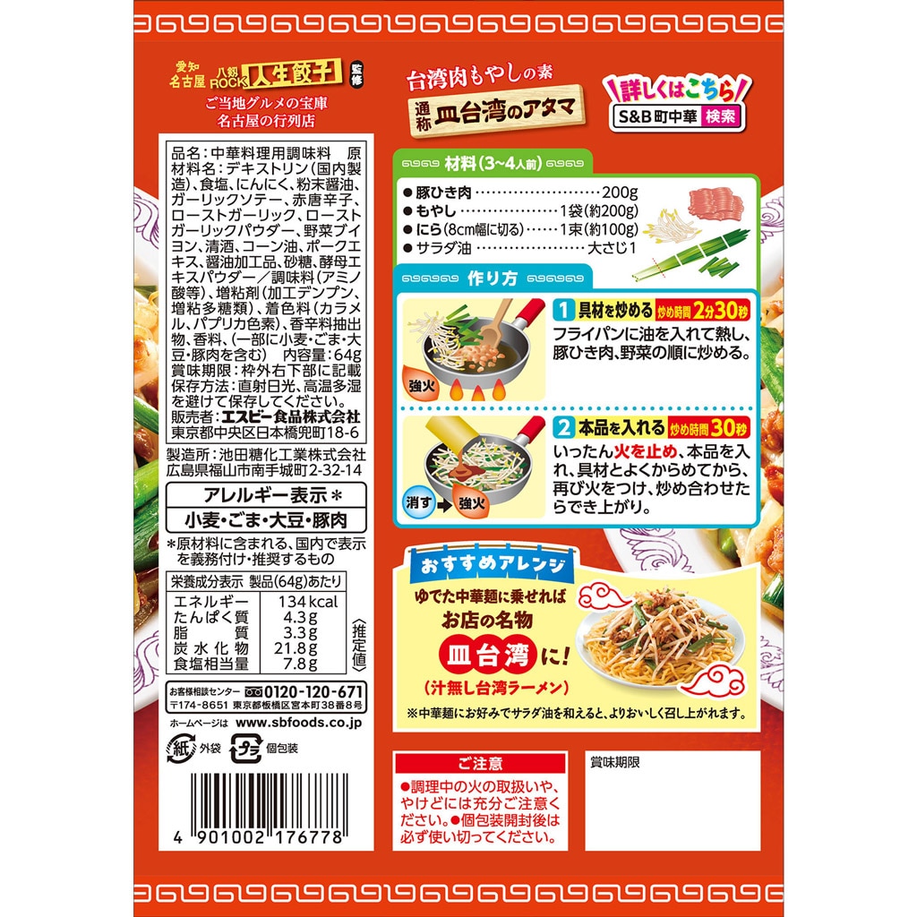 デキストリン(国内製造)、食塩、にんにく、粉末醤油、ガーリックソテー、赤唐辛子、ローストガーリック、ローストガーリックパウダー、野菜ブイヨン、清酒、コーン油、ポークエキス、醤油加工品、砂糖、酵母エキスパウダー/調味料(アミノ酸等)、増粘剤(加工デンプン、増粘多糖類)、着色料(カラメル、パプリカ色素)、香辛料抽出物、香料、(一部に小麦・ごま・大豆・豚肉を含む)