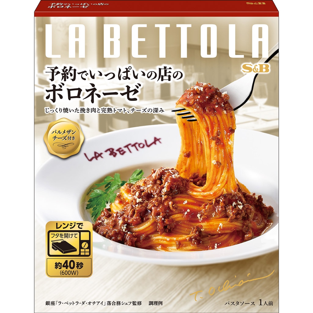 “予約でいっぱいの店”として有名な東京・銀座「ラ・ベットラ」落合務シェフ監修。豚と牛挽肉を完熟トマト、赤ワインでじっくり煮込んだ濃厚な味わい。別添特製チーズトッピング付き。