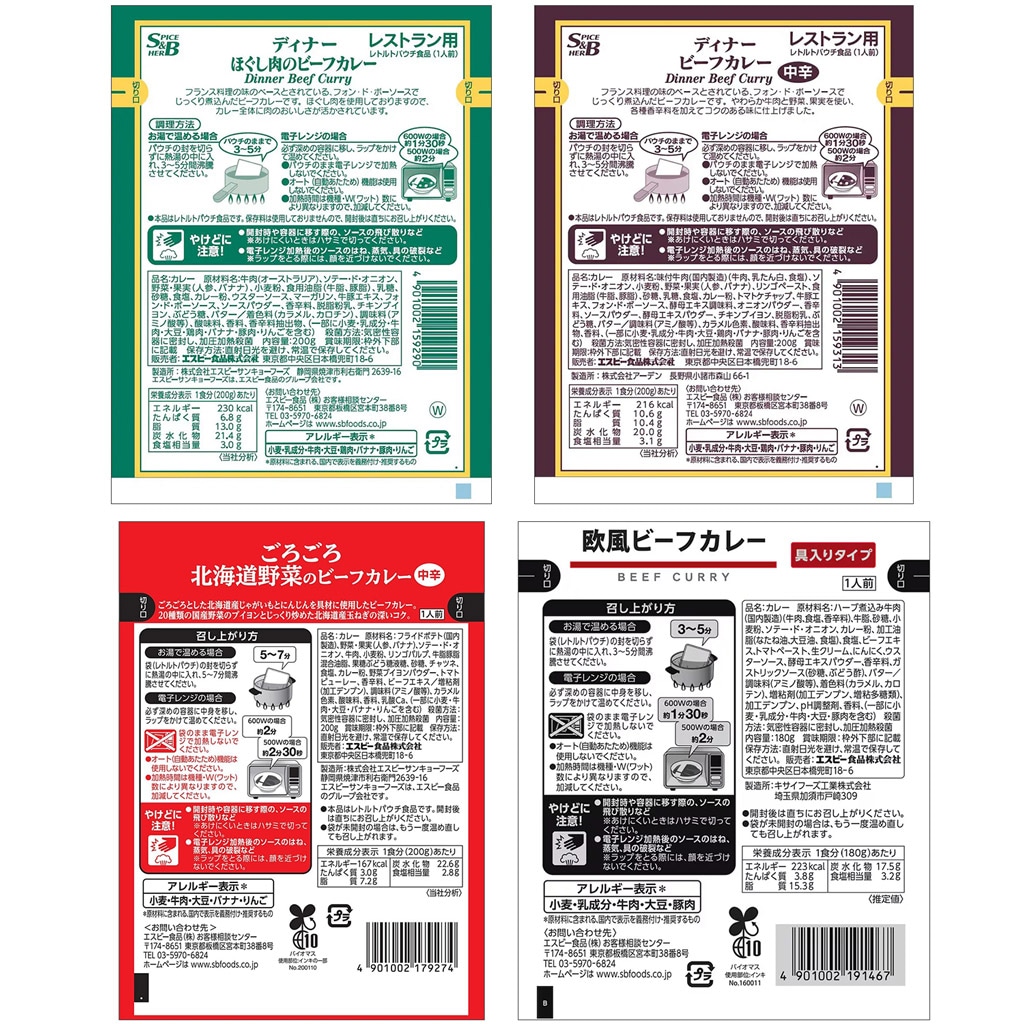 業務用のレトルトビーフカレーの18食セットです。4種類なので、色んなビーフカレーが楽しめます。