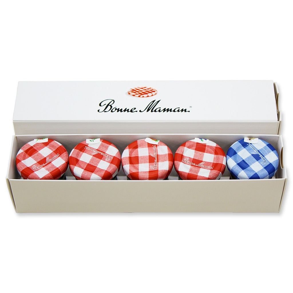 ボンヌママンベリー系ミニジャムが4個とハチミツが1個が入った計5個のセットです。