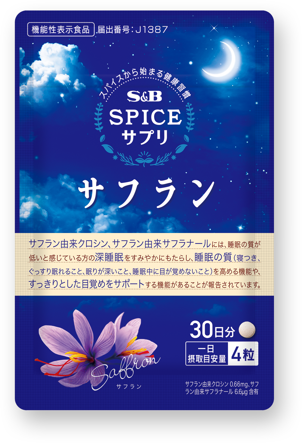 サフランの成分「クロシン」と「サフラナール」の作用により、睡眠の質が気になる方の眠りの深さやすっきりとした目覚めの向上をサポートします。